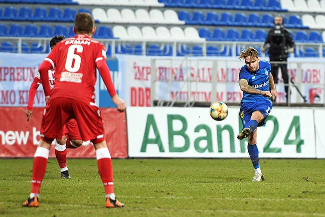 Румуни не змогли відреагувати на пропущений м'яч. Точніше кияни не дали. Команда Мірчі Луческу закріпилася на чужій половині й прагнули забити вдруге. Найактивнішими були флангові захисники – Сідклей і Тимчик – та пара в середині поля – Гармаш і Буяльський. Дуже старався Лєднєв, але у його діях було забагато метушні. Щоправда, це не завадило свій м'яч таки забити. Знову скидав Тимчик, Богдан потужно вистрілив по центру, а голкіпер завалився у кут – 2:0. На цьому команди й пішли у роздягальні.