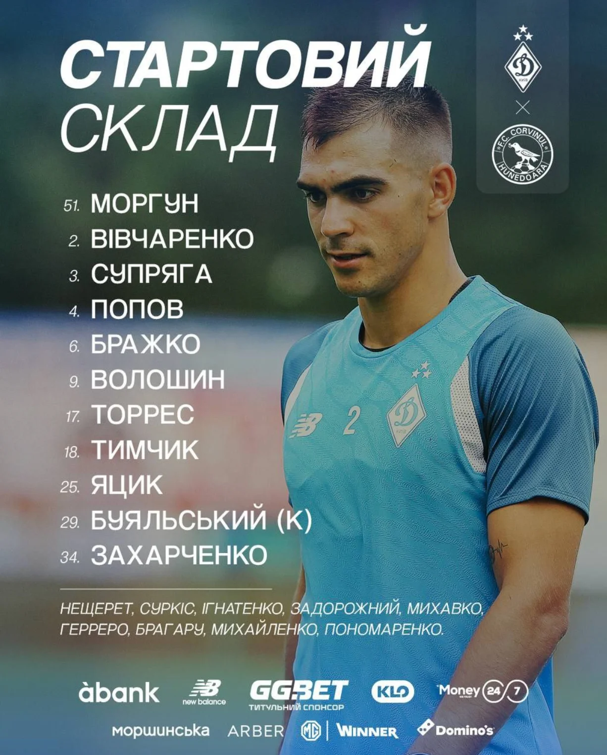У стартовому складі Динамо з'явились Торрес, Яцик і Захарченко. Перший є гіпотетичною заміною Ярмоленку, другий має створити конкуренцію на позиції "вісімки", а третій вийшов замість Михавка. Також варто відзначити продовження використання Бражка в ролі опорника, хоча на Вест Бромвіч випускали Михайленка.
