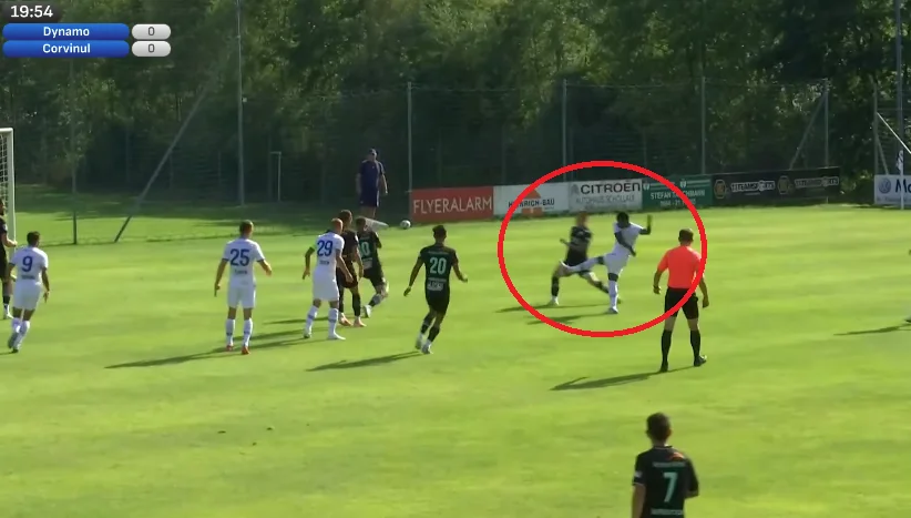 Представник другої румунської ліги не став високо пресингувати Динамо, зустрічаючи "біло-синіх" аж за центральним колом. Частіше – одразу на власній третині. Наші центрбеки отримали свободу дій на м'ячі. Особливо цікаво було спостерігати за Захарченком, адже в структурі Динамо саме лівий ЦЗ відповідає за просування передачами.