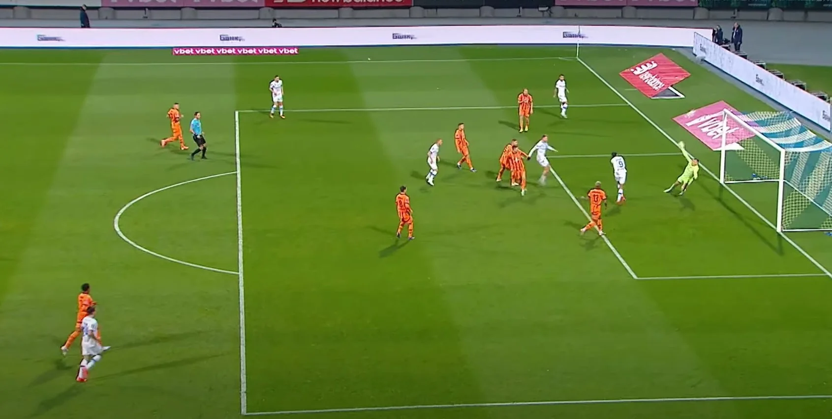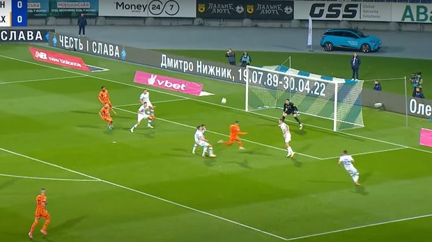 Схоже, ставка на здвоєння опорників (Андрієвський в допомогу до Бражка) зовсім не працює. Надто легко Шахтар проходить серединку. Сікан пробиває головою з кількох метрів у Біловара. На кутовому ще парочка ударів, Судаков знову не знаходить шлях до площини воріт – спершу блок, потім у молоко. Педру Енріке подав з лівого флангу, Сікан виграв повітряну дуель в Дубінчака, але снаряд пострибав поруч з лівою стійкою, де Бондаренко з Егіналду ще й могли добивати.