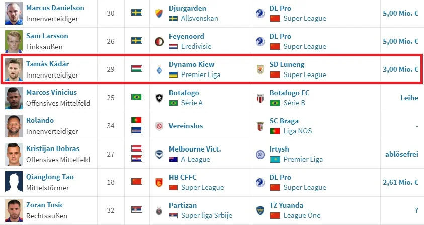 Київське Динамо отримало солідну суму за перехід угорського центрбека Тамаша Кадара в китайський Шаньдун Лунен.