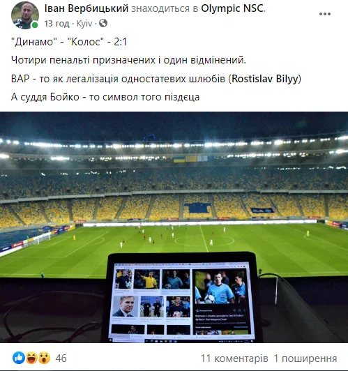 Журналіст Іван Вербицький порівнює VAR з одностатевими шлюбами. Символізм Бойка у цій історії залишаємо без коментарів...