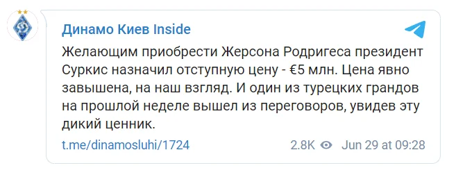 За інформацією Telegram-каналу "Динамо Київ Inside", президент "біло-синіх" Ігор Суркіс призначив відступну ціну на гравця у розмірі 5 млн євро. Сума вже встигла відлякати одного з турецьких грандів, який минулого тижня вийшов з переговорів щодо футболіста.