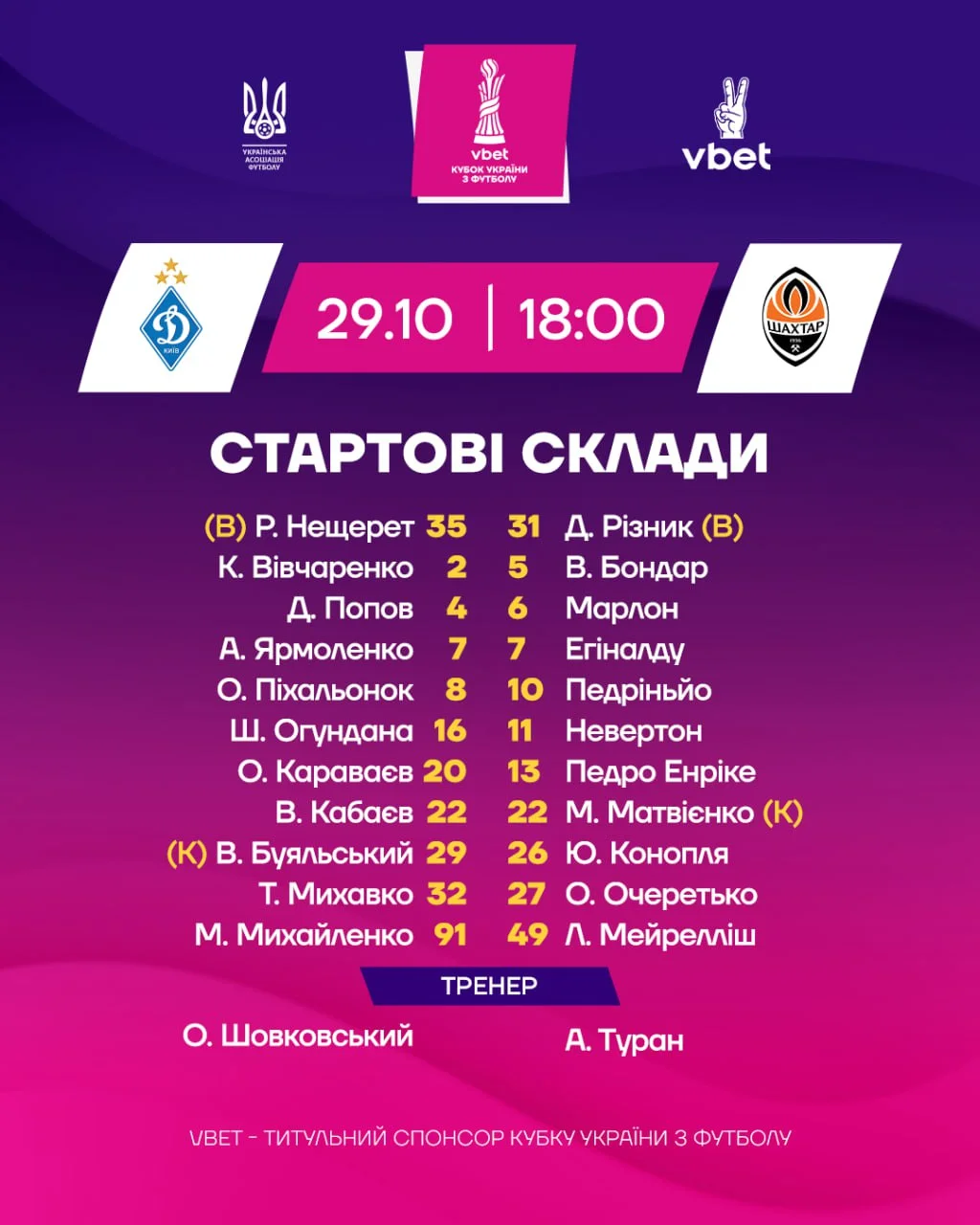 Кубкове Класичне – це лишень перша з двох битв Динамо та Шахтаря на цьому тижні. У неділю команди зустрінуться в чемпіонаті, тож тренерам довелося подумати про фізичні кондиції своєї основи. Власне, Кубок і створений для ротацій, однак зливати цей турнір ніхто не захотів. Зміни у складі виявились обмеженими.
