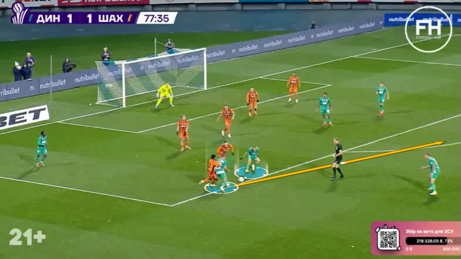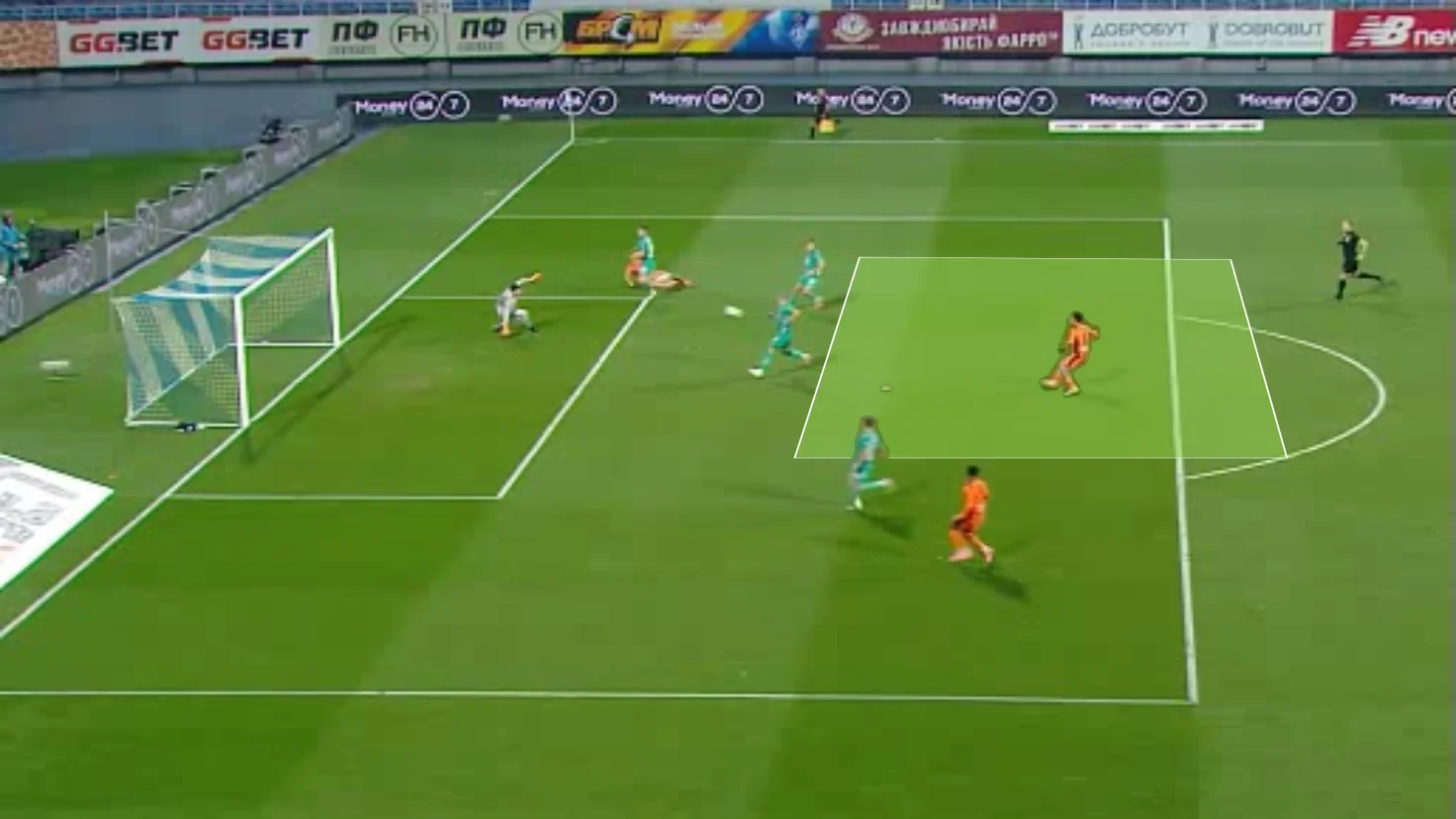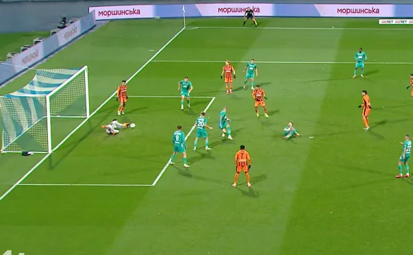 Шола змістився з флангу до штрафного, де було два відкривання: на ближню стійку від Герреро та одразу під удар Бражку. Нігерієць обрав Володимира, однак його постріл накрили.