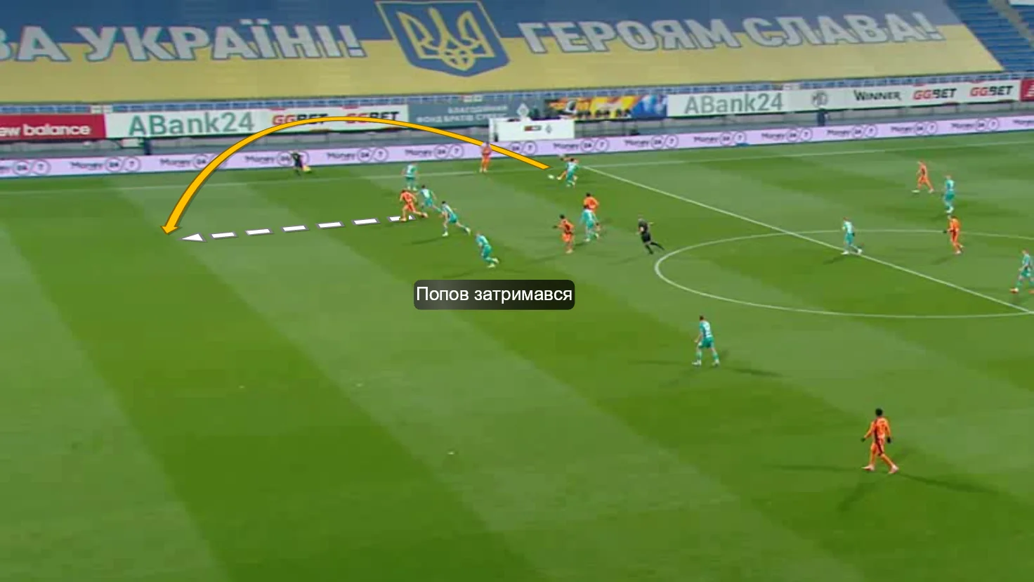Ще за дві хвилини хороший навіс від Піхальонка на дальній мав завершувати Попов, однак Ден не зміг дотягнутись. Показово, що при обох кросах (зі стандарту і з гри) провалився Бондар – у першому випадку Валерій програв єдиноборство, а в другому не вгледів вривання за спину на дальню стійку. Фірмові помилки "гірників".