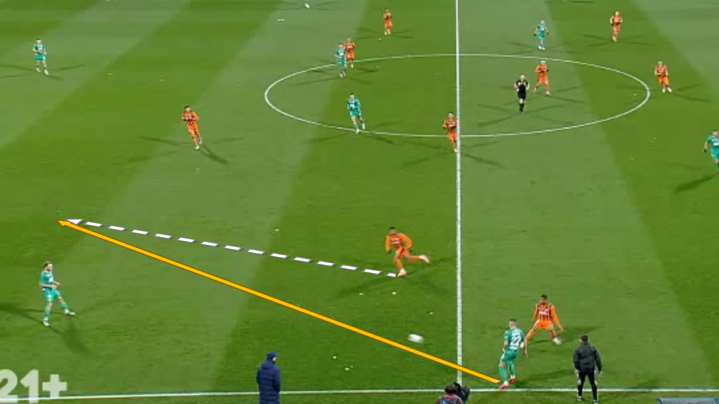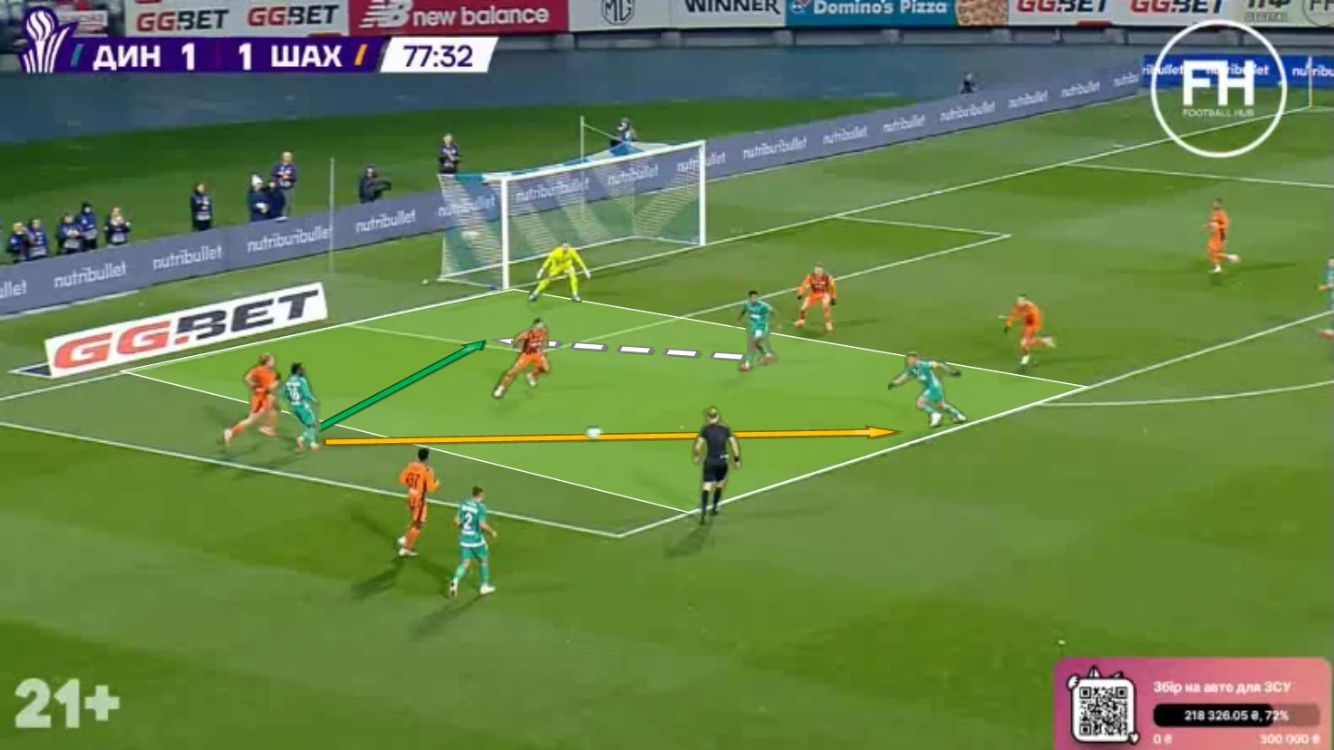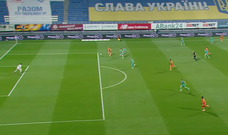 І все це проходило на тлі тотальної пасивності Динамо в атаці. Команда практично не переходила центр поля. Основний паттерн передач у першому таймі – це пас назад з флангу. Фулбеки не розпізнавали простір попереду, вінгери не приймали собі на хід, віддавати вперед було нікому. Як наслідок, за перший тайм чинний чемпіон завдав лишень 1 удар по воротах. З центру поля по горобцях.