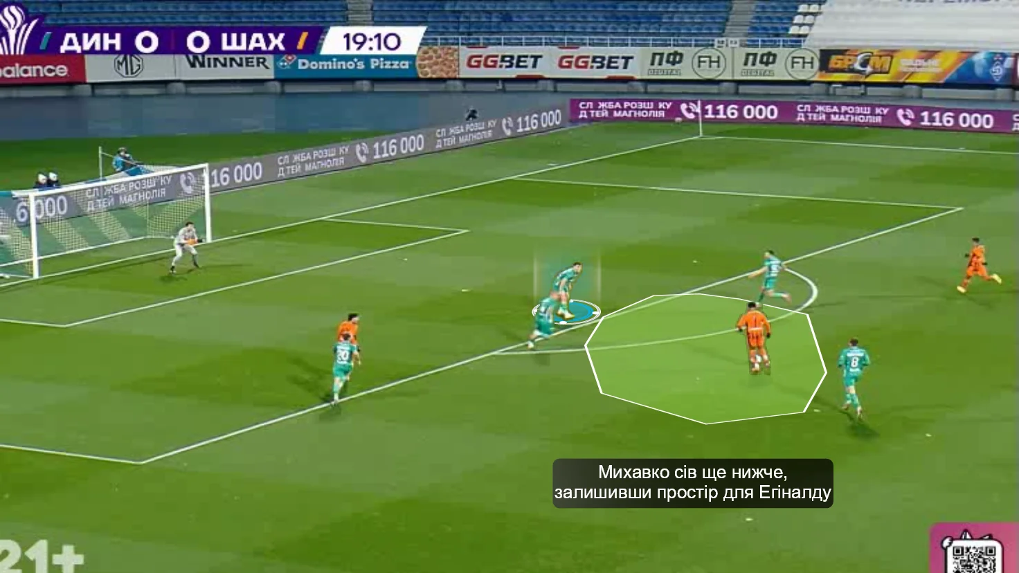 Однак далі трапилась ще одна показова історія. Динамівці підібрали м'яч на фланзі, після чого пішла подача в центр штрафного. Ловити там було нічого, однак "гірники" залишили відкритою зону підбирання. Кабаєв підхопив відскок і пробив без спротиву, однак постріл накрили.