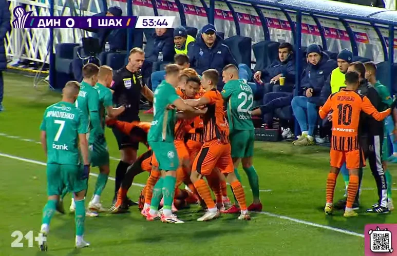 Щоправда, великої кількості моментів це не принесло, однак у "гірників" почали здавати нерви. Зрештою, це вилилось у бійку на 54-й хвилині. Показово, що вона стала наслідком боротьби між Невертоном і Вівчаренком за підбирання на половині поля Шахтаря.