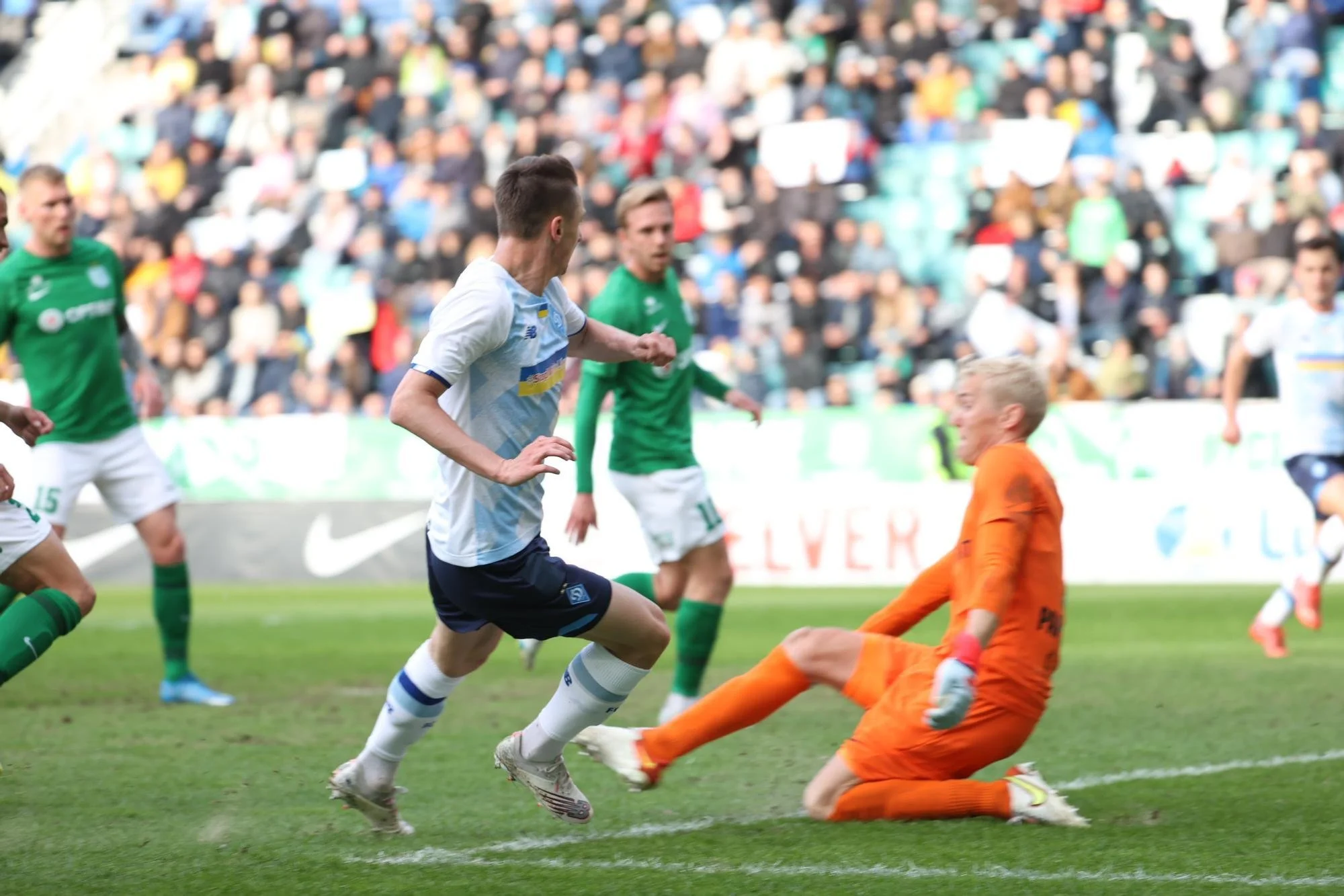 Дубінчак блискучим пасом п'ятою у дотик розвинув атаку, яка виникла після елегантного виходу з-під пресингу. Ванат втікав, але на дистанції трохи не вистачило у швидкісній боротьбі з кількома візаві. Від гри старшого з двох динамівських Волошиних (18-річний Назар розриває за U-19) повіяло певними зразками Буяльського. Тонка пасова робота, вмілі відкривання у крихітний простір, поставлений удар. Бурда та Дубінчак завозилися під тиском. Так прийшов перший удар Флори на 25 хвилині, Шаповалов з рикошетом від захисника пробив повз ворота. Антюх від свого штрафного розігнав атаку, обігрався з Ванатом і сам же завершував з кількох метрів. Дуже шкода, що мінімально не влучив у дальній кут.