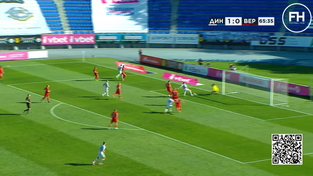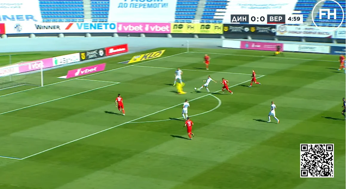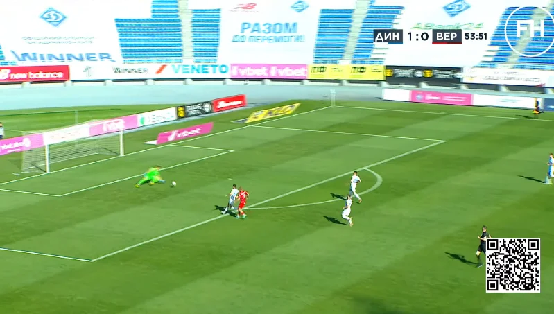 Владислав вибіг віч-на-віч, але воротар встиг скоротити дистанцію, видряпавши м'яч з-під ніг Владислава.