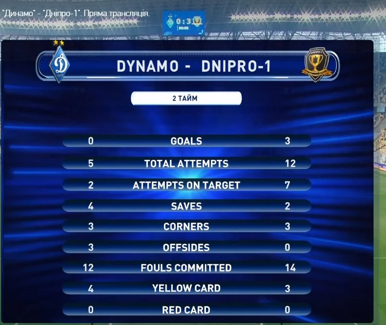 Це повторення найбільшої поразки київського клубу в чемпіонатах України. Попередні 4 розгромні фіаско з таким рахунком траплялися в матчах проти Металіста (одного разу) та Шахтаря (тричі). Київ цілком награв на негативний результат. Суперник значно більше бив по воротах. Крім цього, дніпряни, які в єврокубках вразили ще менше, сьогодні втричі частіше влучали у площину воріт. Схоже, розмови про психологічну яму гравців Динамо мають під собою реальне підґрунтя.