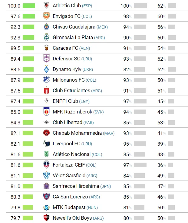 Україну у цьому списку представило Динамо, яке стало другим в Європі і сьомим серед усіх клубів світу з індексом 88,5 (склад "біло-синіх" на 82% складається з українців, а 62% з них є вихідцями з клубної академії.). Натомість беззаперечним лідером зі 100%-им показником став іспанський Атлетік з Більбао.