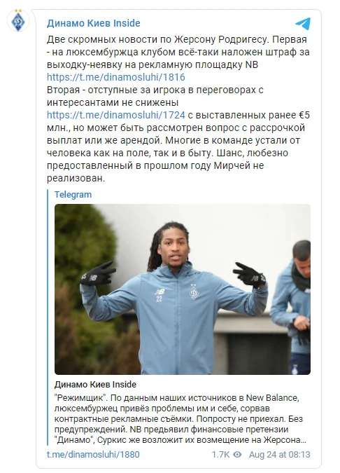Також джерело зазначає, що на Родрігеса було накладено штраф за невиконання своїх рекламних зобов'язань перед New Balance. У клубі загалом незадоволені поведінкою футболіста.