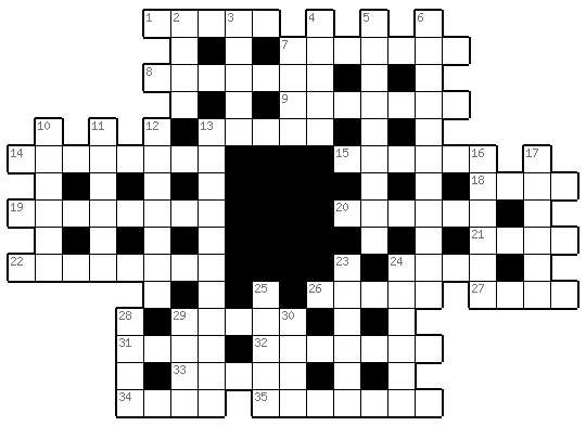 Горизонтально: 1. У свої найкращі часи Штефан Ройтер пробігав 100-метрівку за 11 секунд. Яке прізвисько за ним закріпилося? 7. Італійський рефері 80-х. 8. Ім’я півзахисника і капітана тбіліського Динамо 70-х. 9. Голкіпер дніпропетровського Дніпра 60-х. 13. Автор першого голу київського Динамо в історії Кубка (Ліги) чемпіонів. 14. Добротний хавбек Перуджі, Роми, Парми у 70-80-х, зараз – футбольний функціонер, якого згадують у тій же Ромі. 15. Колишній гравець Юве, який не врятував Фулхем від вильоту з АПЛ. 18. Прізвисько сивочолого метра серед італійських алленаторе. 19. Бельгійський ФК не без помітного українського сліду. 20. Прізвисько футболістів збірної Судану. Літають вони, щоправда, дуже низько. 21. Дрібний французький клуб, на перетині 60-70-х єдиний раз в історії зіграв у єврокубках, де вилетів від лондонського Арсенала. 22. Затишний стадіон із німецької Бундесліги. 24. Один із головних претендентів на "Золотий м’яч" кінця 60-х. 26. Екс-наставник львівських Карпат. 27. Як звали серба із півзахисту Волині і запорізького Металурга? 29. Захисник Таврії, якого дискваліфікували через марихуану. 31. Керована ракета, якою наші вояки, зокрема – ультрас, пробивають броню супостата. 32. Півзахисник збірної Франції у провальну для "Ле Бльо" епоху 2008-2010 років. 33. Відчуття після розгромної поразки. 34. Умовна позначка, яку використовують шулери. 35. Видатний бомбардир Кайзерслаутерна, капітан збірної ФРН.
