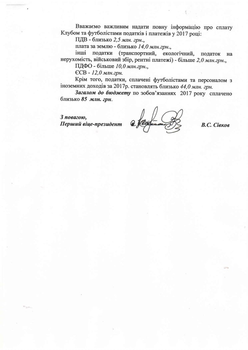 Столичний клуб опублікував скан-копії документів, які свідчать про те, що клуб є добросовісним платником податків і не має щодо цього жодних претензій з боку ДФС.
