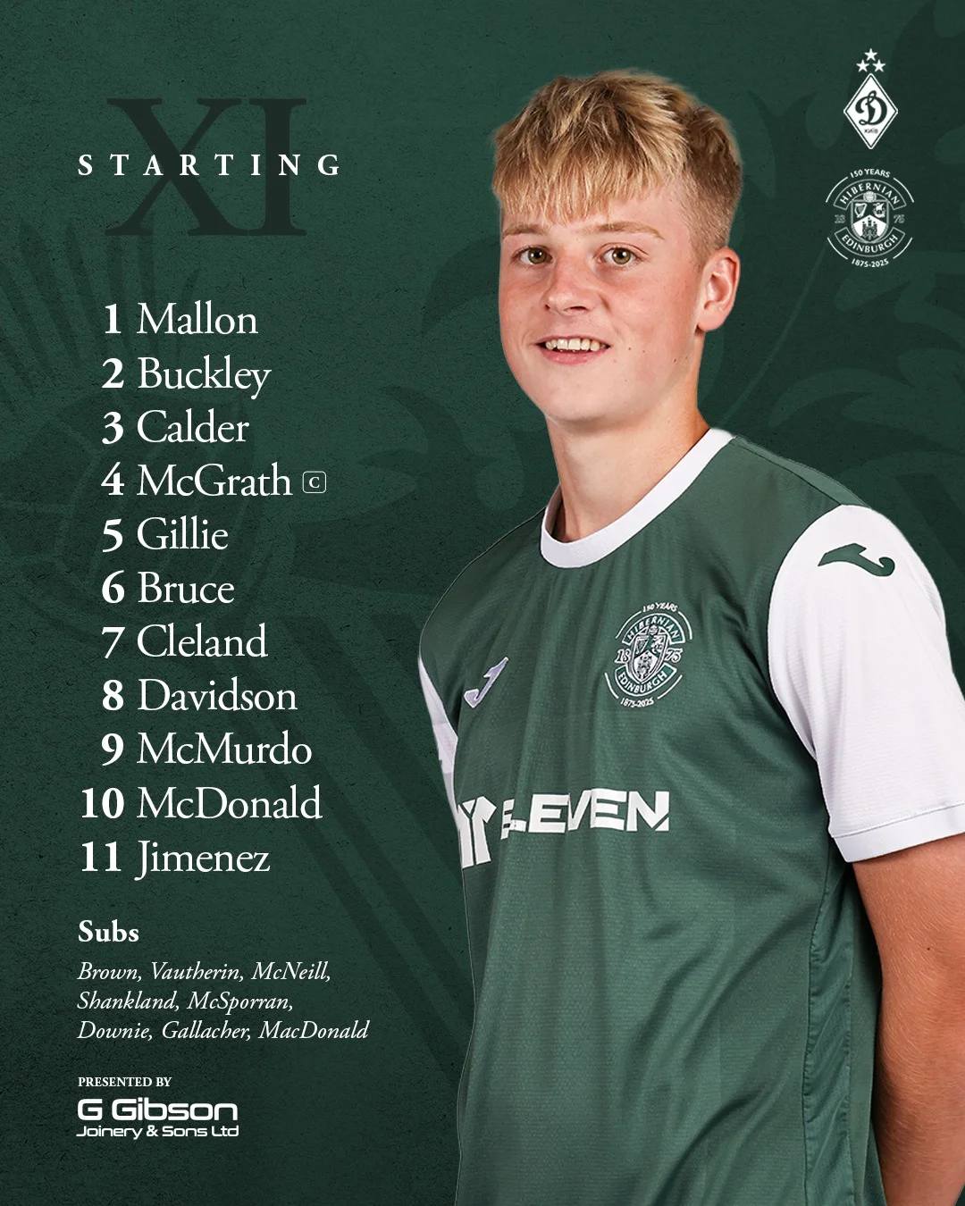 Хіберніан: 1. Меллон – 2. Баклі, 3. Колдер, 4. Макграт, 5. Гіллі - 6. Брюс, 8. Девідсон, 20. Макдоналд, 9. Макмердо, 11. Хіменес – 7. Клілленд