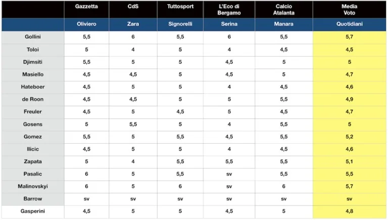 Лише Маліновський і Пашаліч отримали по 6 балів. При цьому LGdS оцінив Аталанту як команда на жалюгідні 4, а її головного тренера – в 4,5. Стільки ж дісталося і двом центральним хавбекам Де Рону та Фройлеру. Мабуть, головний конкурент нашого гравця Гомес отримав 5,5. Газета навіть радить своїм читачам задуматися над заміною аргентинця на українця у фентезі Серії А на найближчі вихідні.
