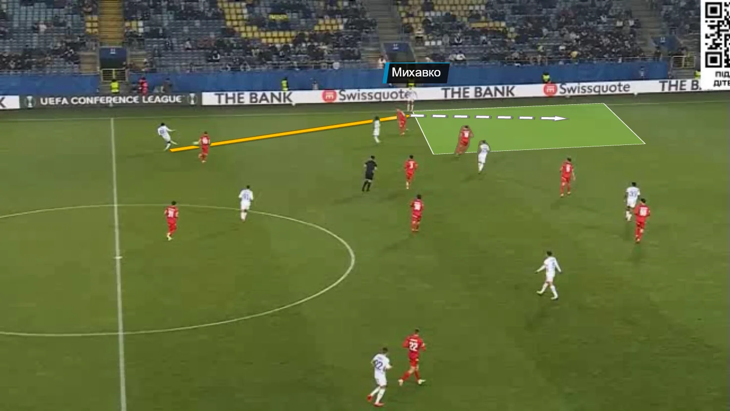 На 23 та 24-й хвилинах могла спрацювати ідея з проривами Михавка лівим флангом. Спочатку Тарас відкрився у простір, пройшов лівим флангом і прострілив у центр штрафного. Герреро летів на замикання, але не зміг дотягнутись.