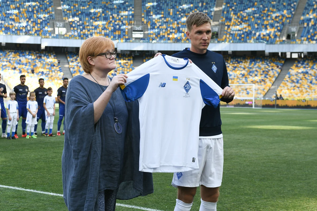 На рукавах присутні елементи державного прапору України, а під емблемою зображений автограф легендарного футболіста та тренера Валерія Лобановського.