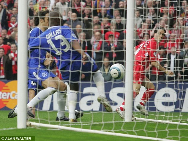 Джон Террі був першим на м'ячі, однак чомусь зволікав із вибиванням. Цим скористався Луїс Гарсія, який легким ударом скерував м'яч у ворота. На лінії рамки чатував Галлас, який вибив м'яч, але іспанець побіг святкувати. Гравці Челсі якусь секунду продовжували грати, але тут пролунав свисток арбітра – гол зараховано, Ліверпуль повів у рахунку!