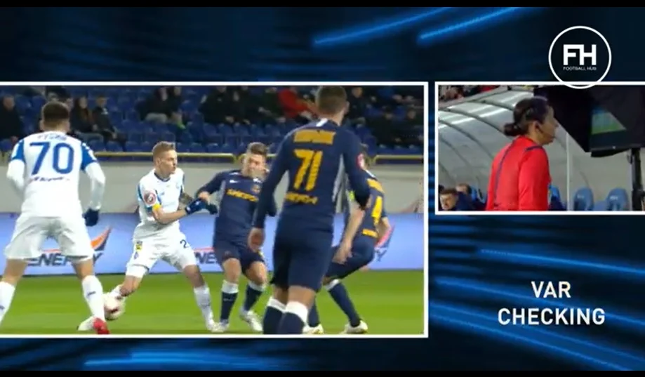Система повернула своє Динамо у моменті з пенальті. Падіння Русина справді було картинним, але так здалося лише в динаміці. Знову ж, повтор показав, що Кравченко завадив нападнику дістатися до м'яча із порушенням правил. Отож після першого тайму VAR – Динамо – 1:1.