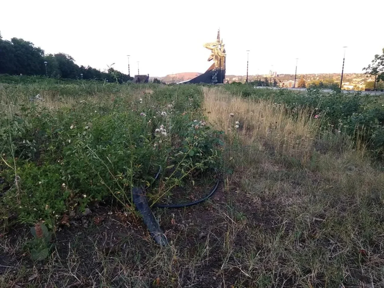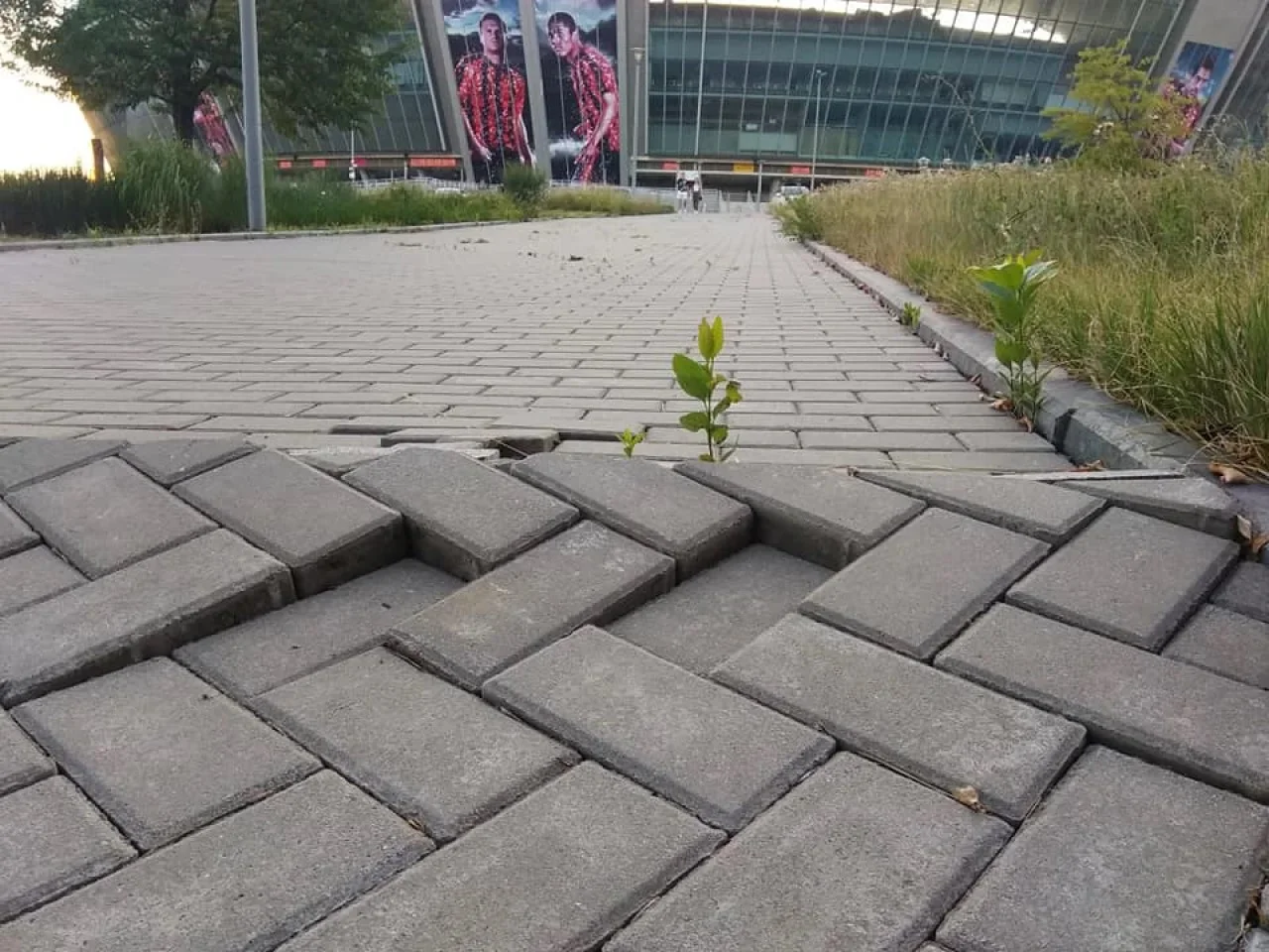 На фотографіях видно, що вся територія навколо стадіону поросла бур'янами, а частина бруківки вже відверто розвалюється. Ці світлини викликають ще більший смуток, якщо пригадати доглянуті газони біля Донбас Арени до періоду окупації.