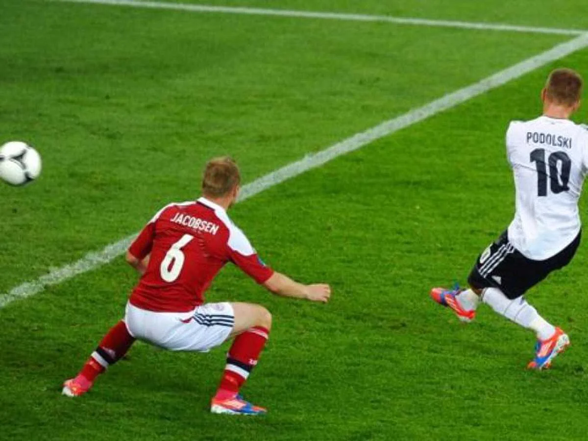 Німці перевагу почали демонструвати вже зі стартових хвилин і, здавалося, що данці із натиском суперників впоратися так і не зуміють. Закріпив таку думку на 19-й хвилині Лукас Подольскі - шульга Полді настільки вдало приклався до м'яча правицею, що Стевен Андерсен лише провів круглого очима у власні ворота. До речі Подольскі, який проводив свій 100-ий матч за збірну, був визнаний найкращим гравцем звітного поєдинку.