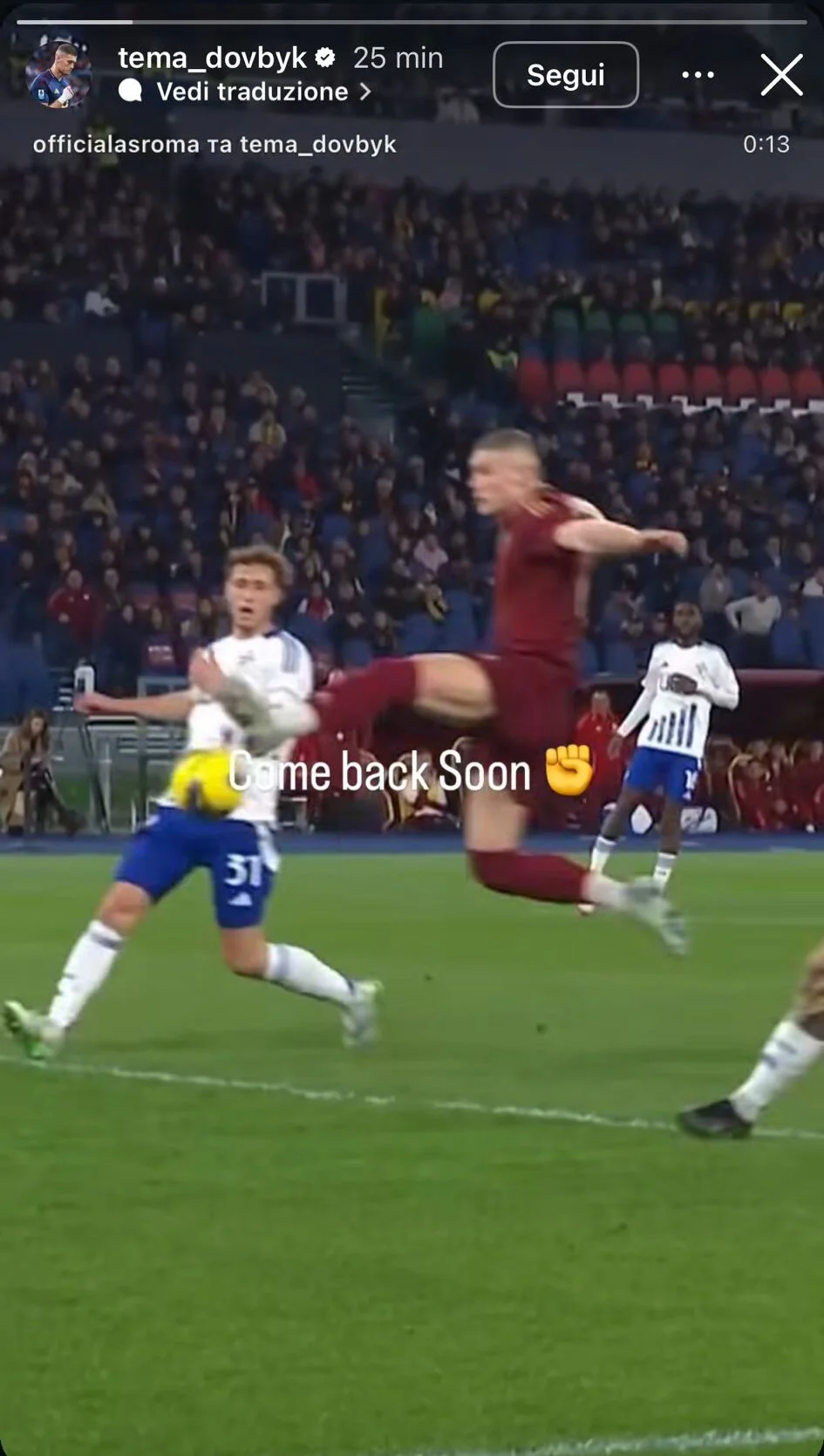 Кілька днів тому український форвард повернувся до тренувань і розраховує потрапити в заявку на цю гру. Артем поділився відео у своєму Instagram і додав до нього "послання". Вистачило двох слів: "Скоро повернуся".