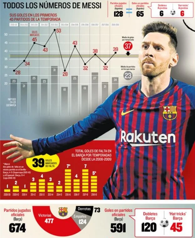 Неймовірно, але факт: починаючи з сезону 2011/12, Мессі поступається лише Ювентусу за кількістю голів прямими ударами зі штрафних – 25 проти 29. При цьому, він самотужки наколотив більше ніж, наприклад, весь мадридський Реал (24). Якщо брати до уваги лише поточний сезон, то аргентинцеві немає рівних у топ-5 лігах ані за кількістю м'ячів з-за меж карного майданчика (7), ані за числом реалізованих штрафних (5). До слова, на Беніто Вільямарін володар п'яти "Золотих м'ячів" оформив 51-й хет-трик у власній кар'єрі. Він став першим футболістом в іспанському футболі, який 45 разів забивав три голи за матч. Фантастика чи не так?
