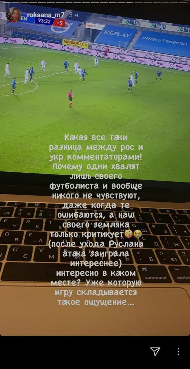 Роксана Маліновська, дружина хавбека Аталанти Руслана Маліновського, жорстко відреагувала на критику футболіста за матч 18-го туру Серії А проти Дженоа.