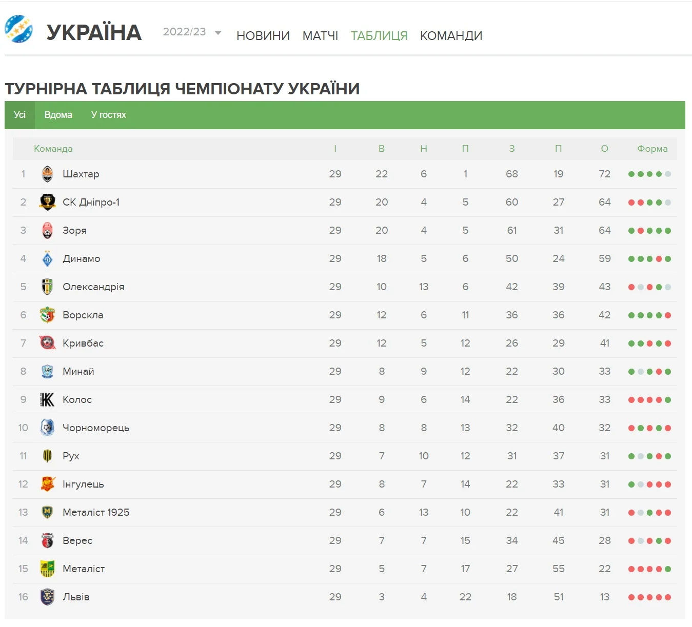 турнірна таблиця УПЛ 2022/23 перед останнім туром: