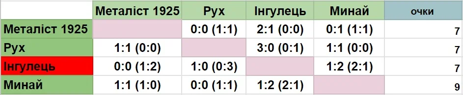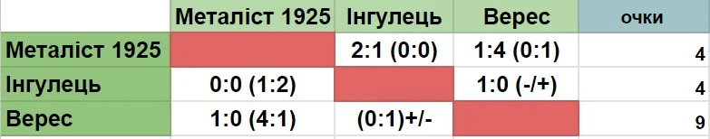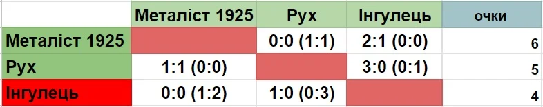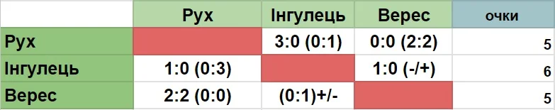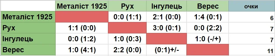 Якщо ж з квартету випаде Рух, то Верес буде вище, ніж Інгулець та Металіст 1925.