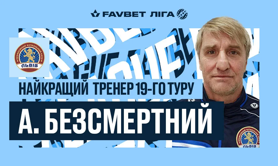 Анатолій Безсмертний за підсумками 19-го туру УПЛ визнаний найкращим тренером, повідомляє офіційний сайт УПЛ. Фахівець отримав 4,6 із 5 можливих балів від експертної комісії.
