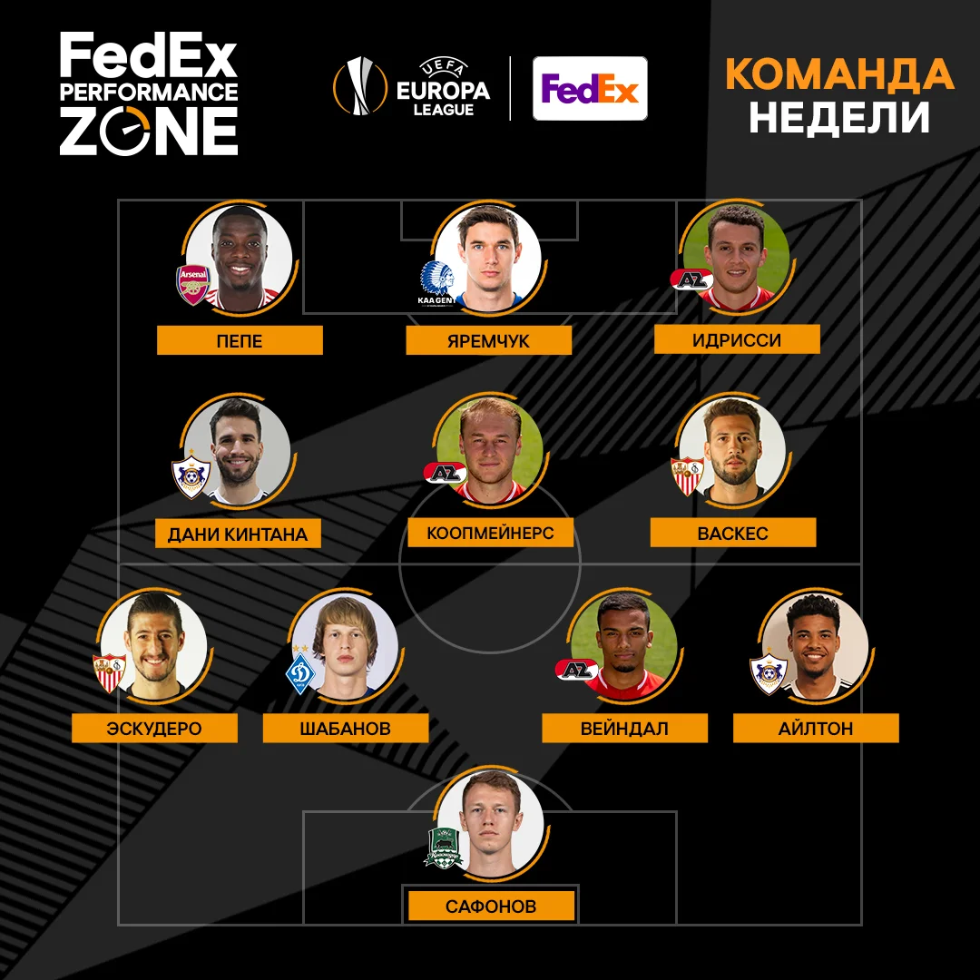 Захисникики: Аїлтон (Карабах), Вейндал (АЗ), Шабанов (Динамо), Ескудеро (Севілья)