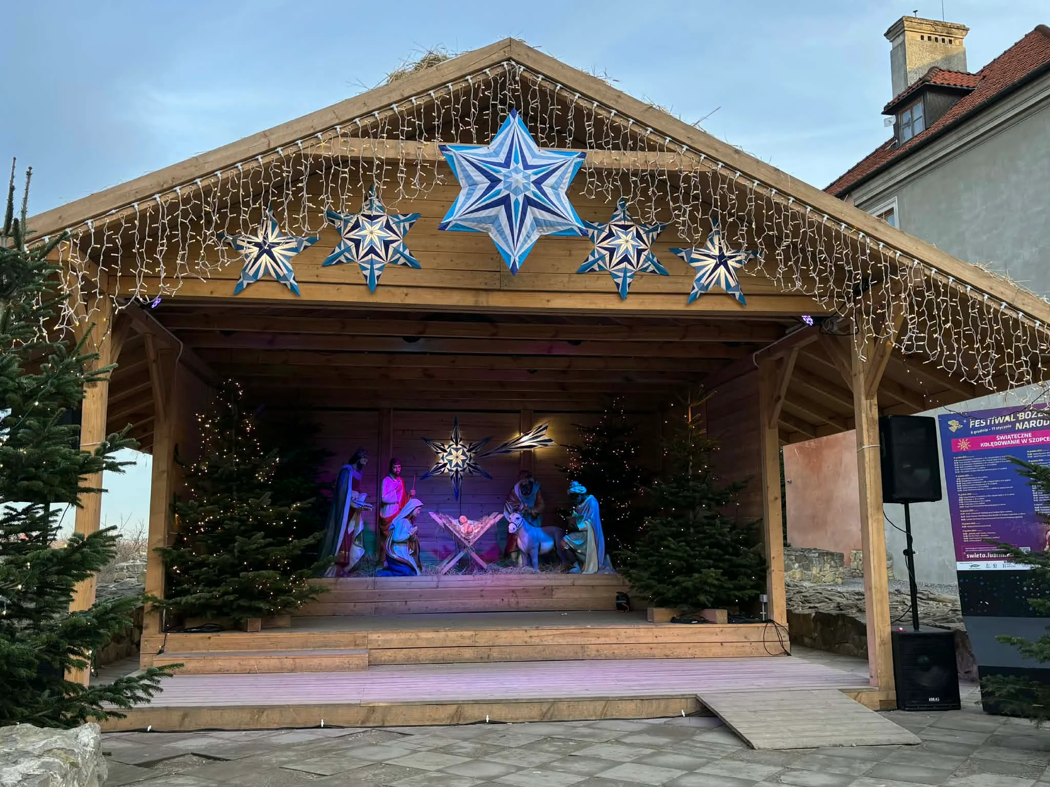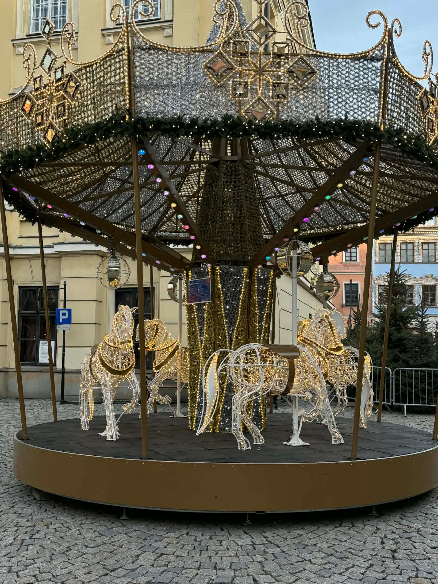 Добравшись до центру міста, здивувалась, що більшість магазинчиків та закладів зовсім не були прикрашені. Тут є світло, повна тиша, спокій, вода. І ракети над головою не літають… Є все, чого ми, українці, позбавлені… А відчуття свята – небагато… Ялиночка, каруселька, на руїнах старовинної церкви – красивий вертеп і декілька прикрас. Той випадок, коли очікування були кращими за реальність.