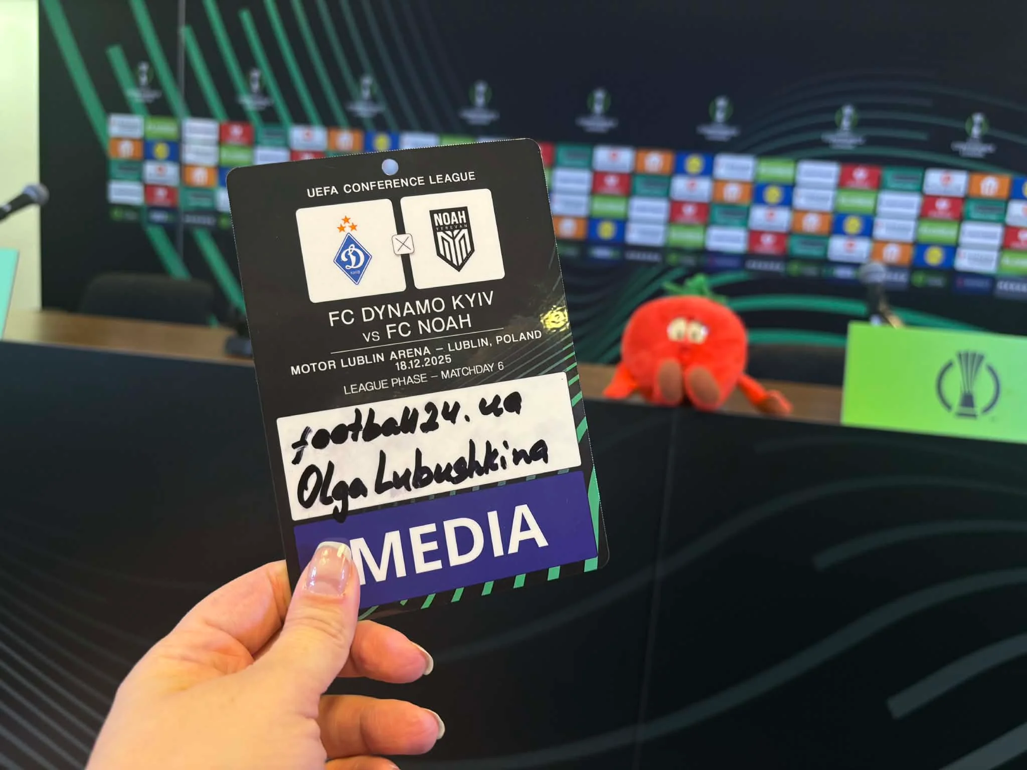 Арена Люблін минулого разу виявилася дуже привітною, тож повертатися було приємно. Забрала свою акредитацію та піднялася у прес-центр, де на журналістів чекало печиво та гарячі напої. Поступово колеги заповнювали зал, а потім стався набіг вірменських медійників. Вперше за всі домашні матчі Динамо в Лізі конференцій було настільки багато закордонних ЗМІ. Журналістів із Вірменії акредитувалося на матч аж десять. Це викликало подив навіть у представників киян.