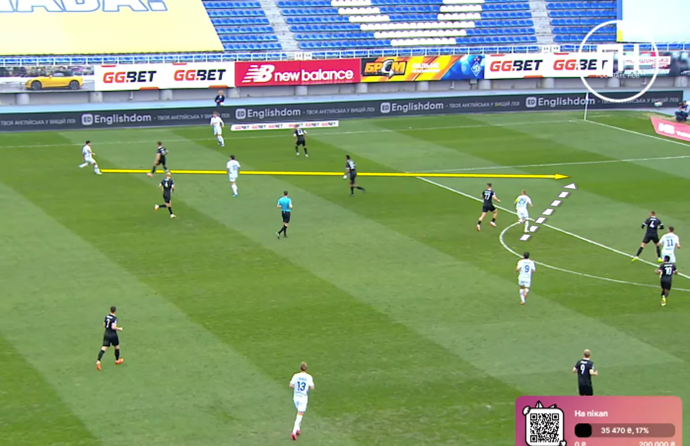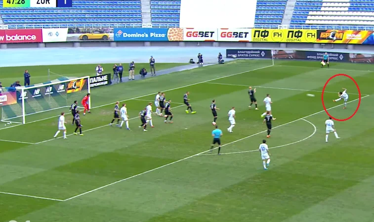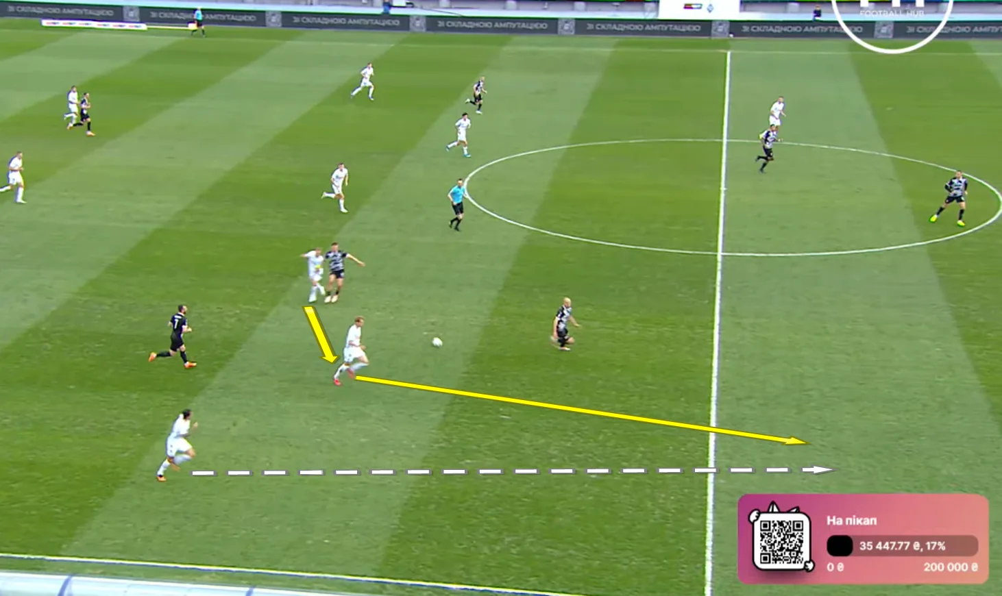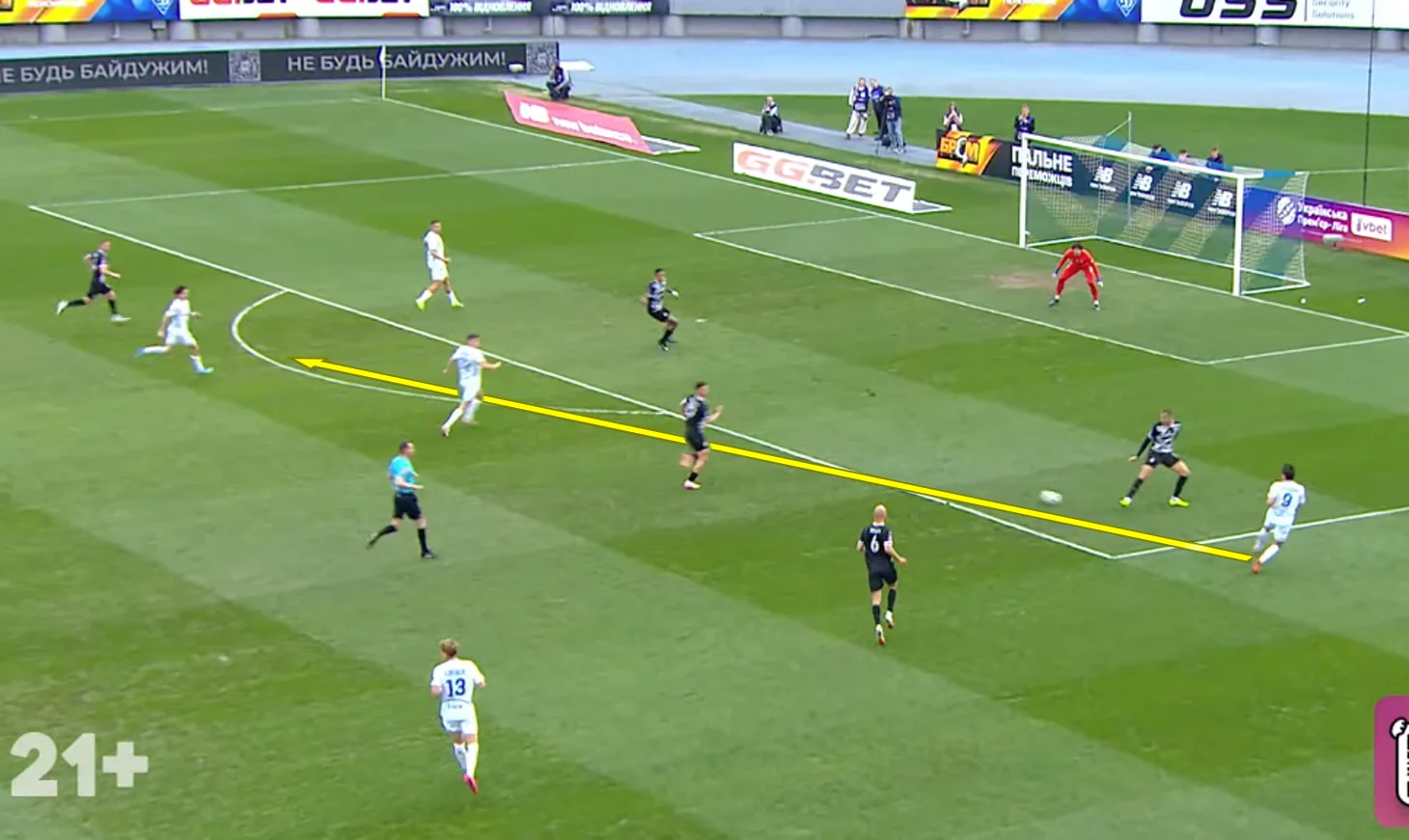 Так, на 25-й хвилині Коробов прийняв пас від Буяльського та реалізував 2-в-1 проти Попари на фланзі, запустивши у прорив Волошина. Назар завершив його прострілом на лінію штрафного.