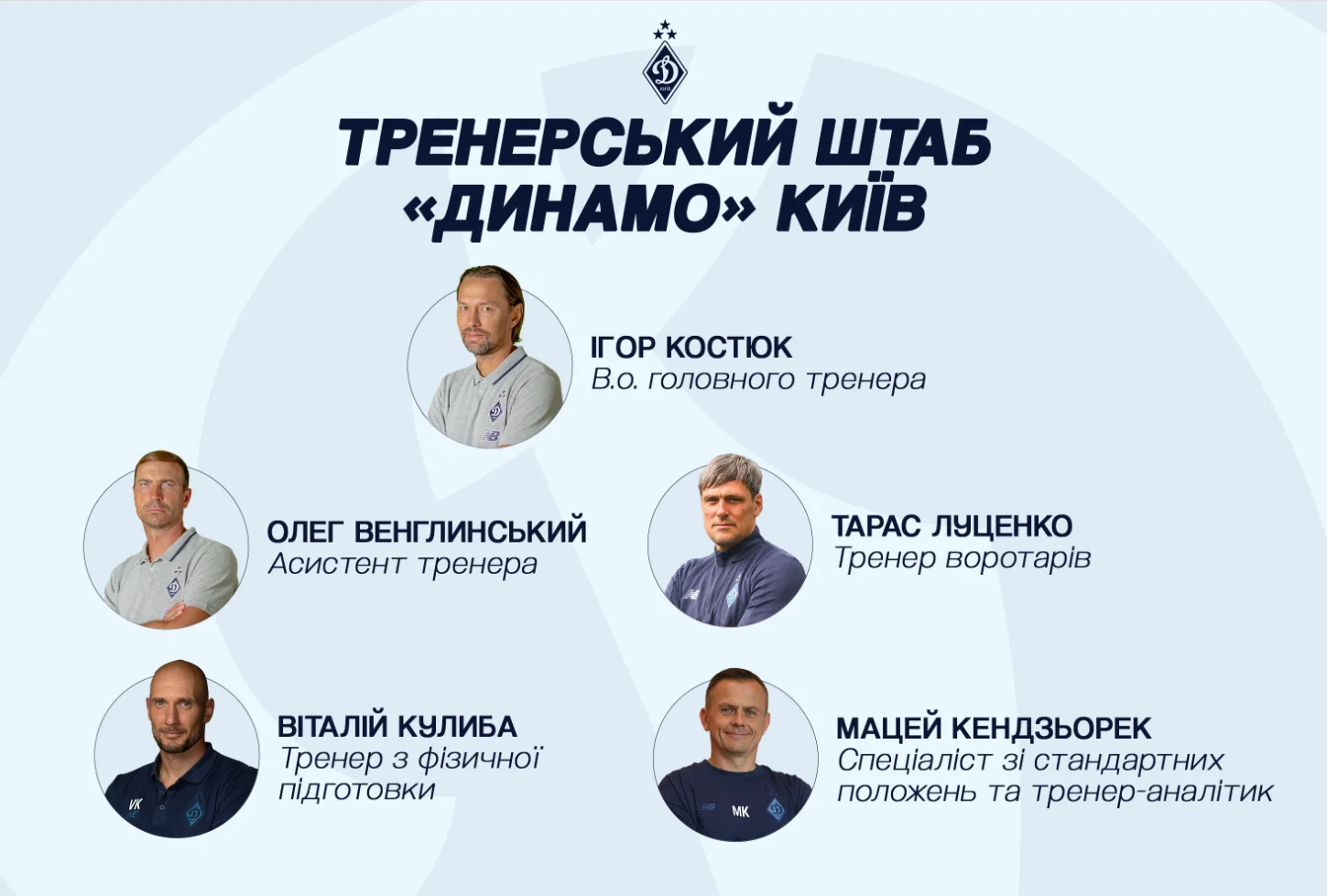 Динамо офіційно повідомило про оновлений штаб, який працюватиме під орудою в.о. головного тренера Ігоря Костюка.