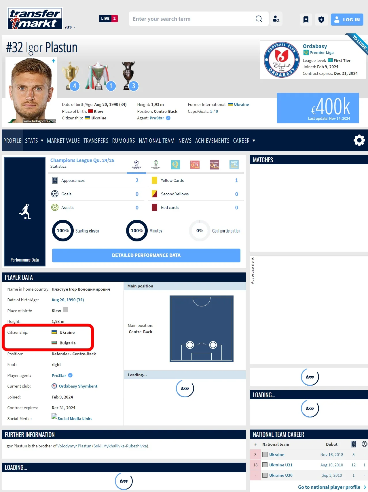 Колишній захисник Ордабаси Ігор Пластун розповів про своє подвійне громадянство. Українське законодавство не передбачає його наявність.