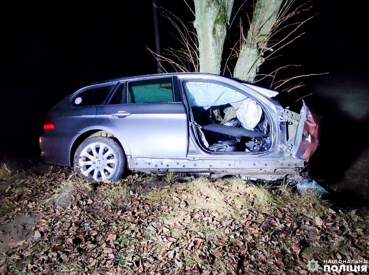 За інформацією правоохоронців Рівненської області, автомобіль BMW 26 грудня, рухаючись поблизу Рівного (між селами Дюксин та Деражне), під час обгону іншої автівки з'їхав у кювет, де зіткнувся з деревом. У поліції зазначають, що однією з версій причини аварії могли бути нічні перегони.