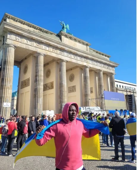 Еммануель взяв участь в акції протесту, яка відбулася в Берліні. "Все, що ми робимо – це перемога. Слава Україні", – написав нігерієць в Instagram.
