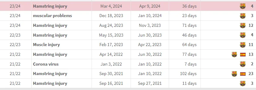 У Ла Лізі найбільш демонстративним є кейс Педрі, який взагалі не травмувався до кінця сезону 2020/21, коли вдалося провести 60+ матчів. Після того каталонець пропустив 75 матчів, або понад 30% ігор, у яких міг вийти на поле. У поточному сезоні він отримав аж три травми, пропустивши вже 130 днів.
