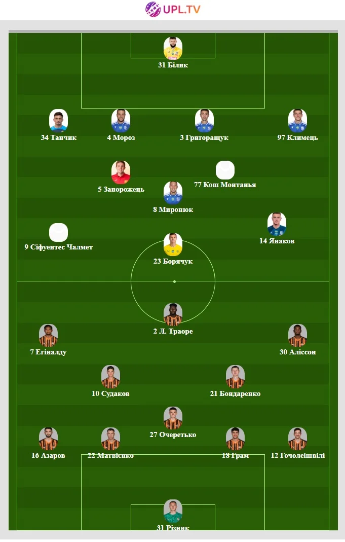 Шахтар: Різник, Гочолеішвілі, Грам, Матвієнко, Азаров, Очеретько, Бондаренко, Судаков, Аліссон, Егіналду, Траоре.
