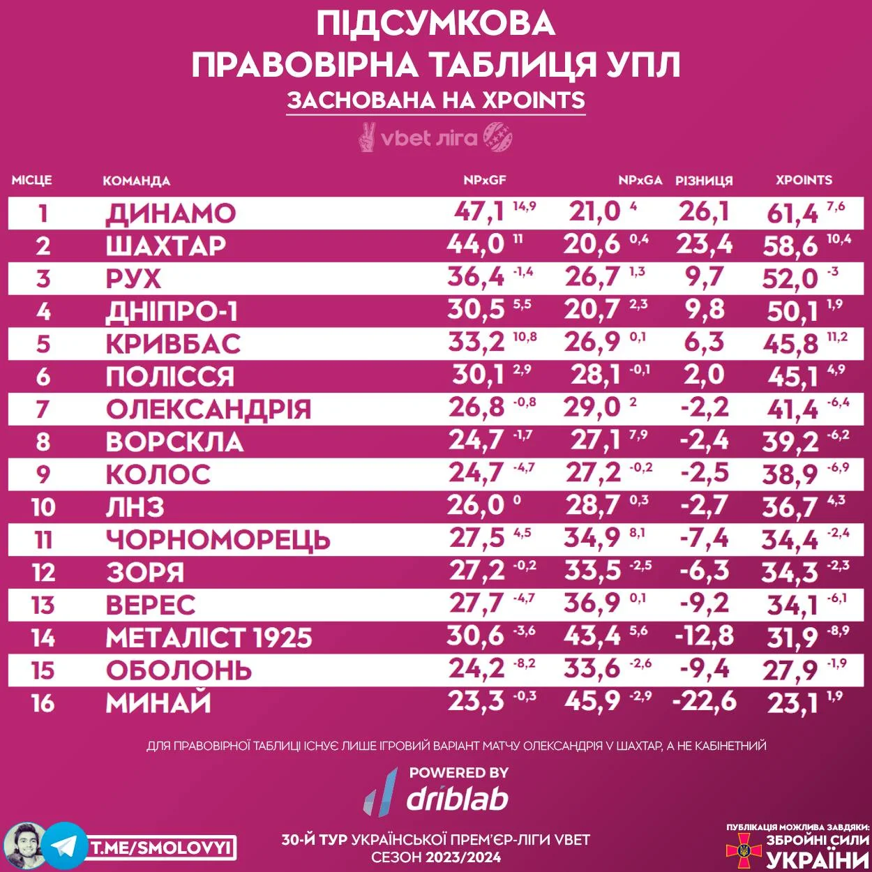Верес таки зберіг місце в зоні перехідних матчів. Жоден із аутсайдерів сезону УПЛ не заслуговував на додатковий шанс більше, ніж рівняни – це підтверджується навіть за очікуваними показниками. У таблиці xPoints "народний клуб" спустився до аутсайдерів лишень після 28-го туру.