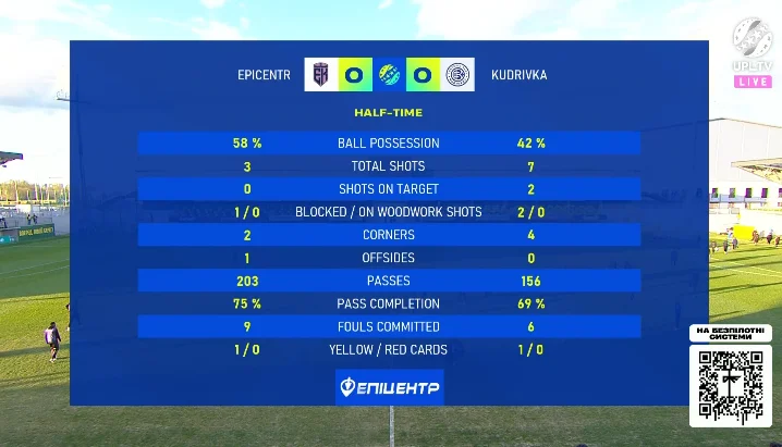 Відповідальність тиснула на футболістів, тож у першому таймі моментів майже не виникало. Кудрівка була активнішою, завдавши сім ударів проти трьох і ледь не вирвавшись уперед на 27-й хвилині. Забити гол міг Морозко, який виконав подачу зі стандарту на дальню стійку – її ніхто не замкнув, а м'яч пролетів поруч з каркасом!
