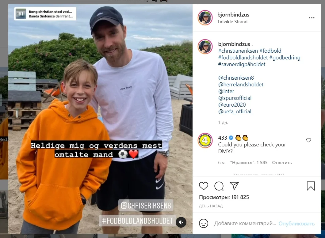 Днями Еріксена помітили на одному з пляжів Тісвільде Стренд. Фанату навіть вдалося зробити спільне фото. "Щасливий я та найбільш обговорювана людина на світі", – йдеться у підписі до фото.