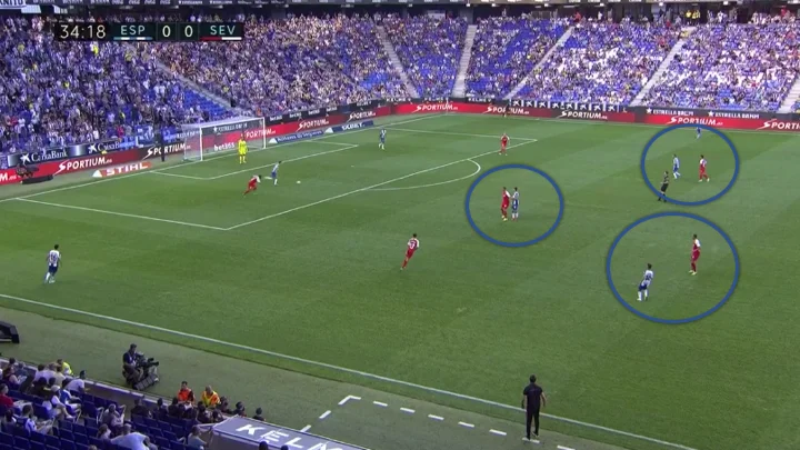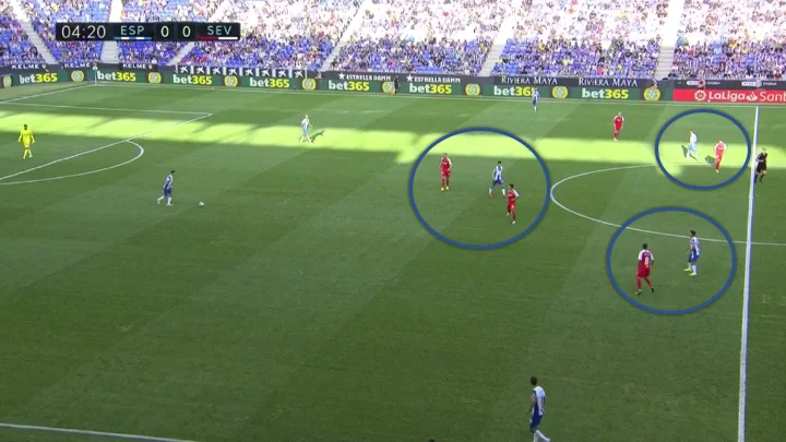 Таким чином, Еспаньйол не міг нормально побудувати позиційну гру. Наслідок – у каталонців лише 6 дотиків до м'яча в чужому штрафному за весь матч з Севільєю.