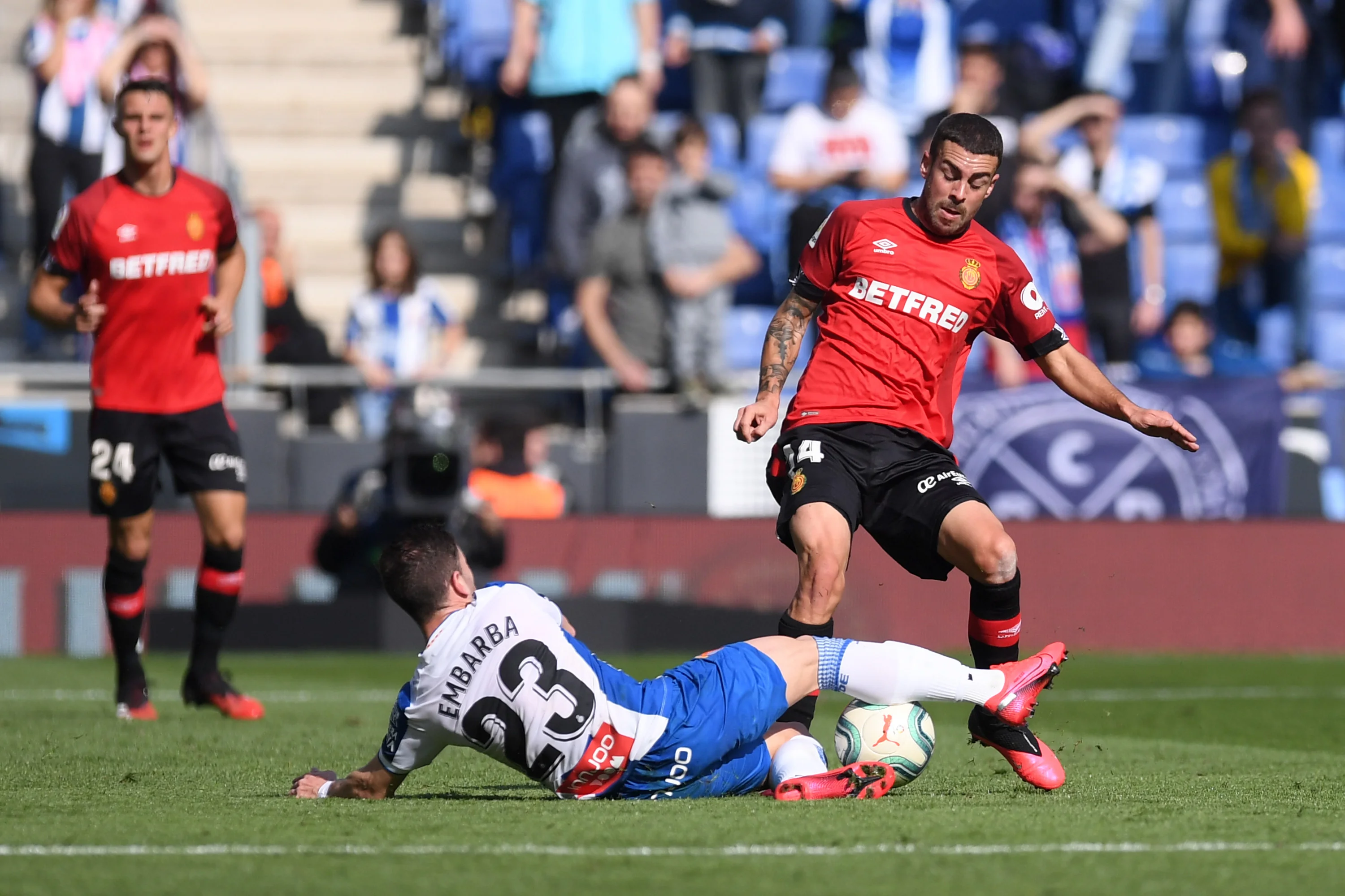 Ігровий день розпочав запеклий поєдинок Еспаньйол – Мальорка. З перших хвилин глядачі могли відчути напругу між командами. На 3-й хвилині Ембарба спробував забити, після поперечної передачі у штрафному, але не влучив. На 11-й Мальорка могла отримати шанс забити, проте VAR відмінив сумнівне пенальті. Після цього "папуги" взяли контроль у свої руки та створили кілька небезпечних моментів, але у першій половині зустрічі забити так і не змогли.