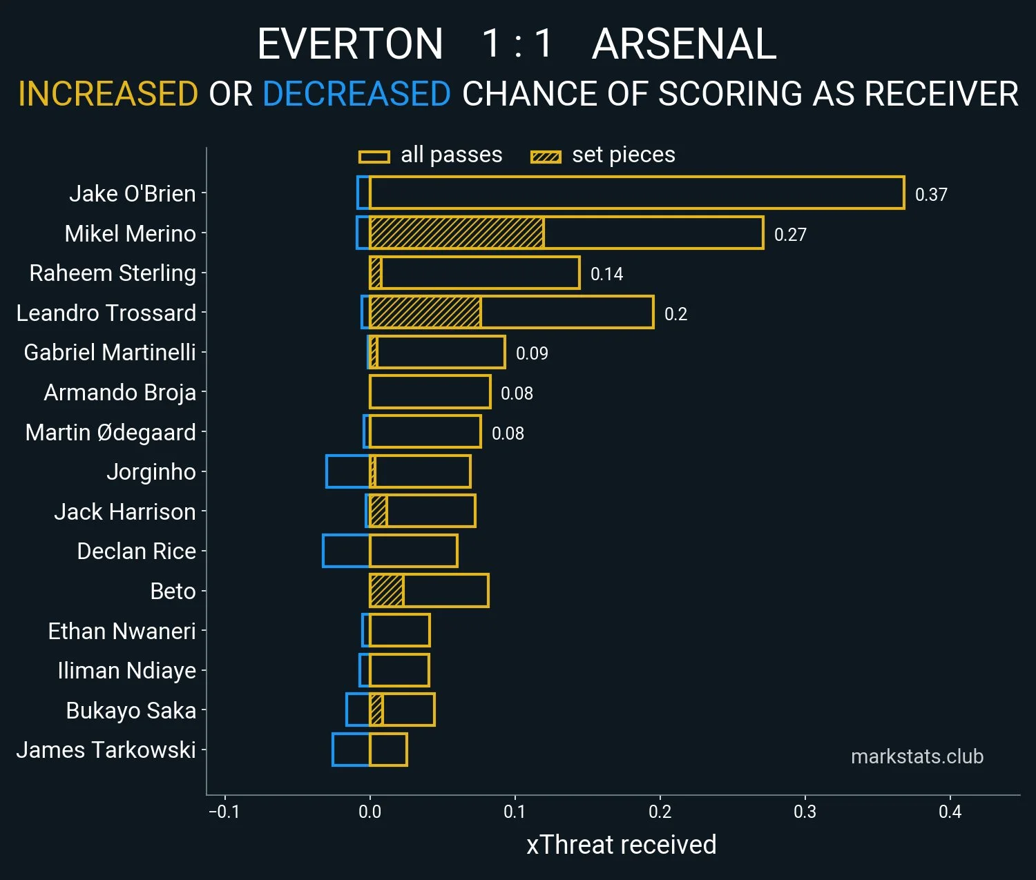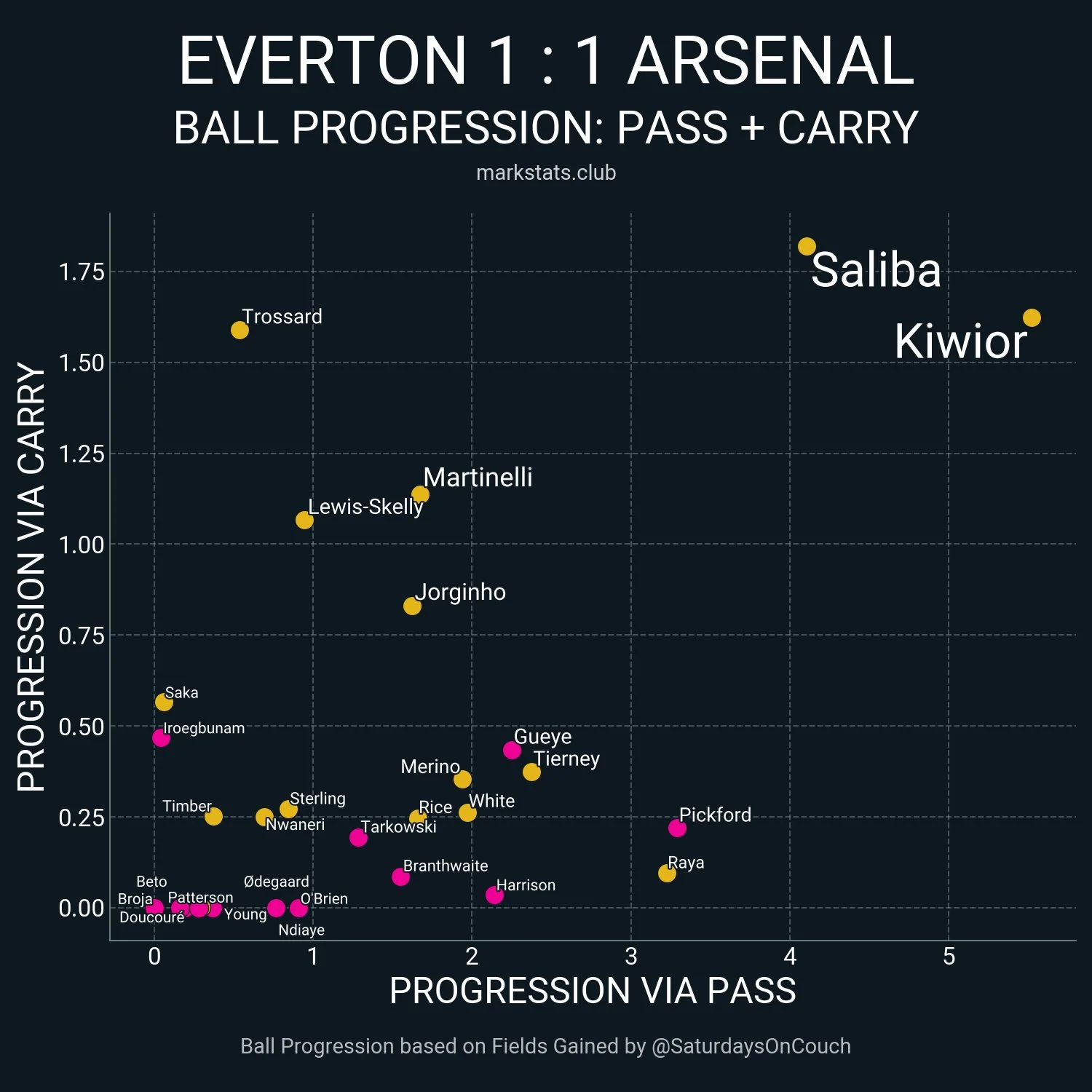 Троссар – найкращий після Меріно футболіст Арсенала за гостротою відкривань (xThread recieved) і перший після центрбеків за кількістю просувань на дриблінгу (carry).